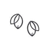 Double Leaf Gem Studs - Cubic Zirconia - Dark Sterling