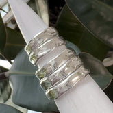 Inspired by walking along the shore, watching the water rippling and washing over rocks and sand, this one of a kind ring features a unique flowing band in sterling silver. Every ring varies from the other, as each is created individually.