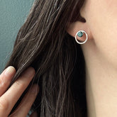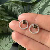 Terrain Gem Circle Studs - Smoky Quartz & Bright Sterling