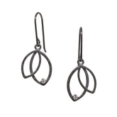 Double Leaf Gem Earrings - Cubic Zirconia - Dark Sterling